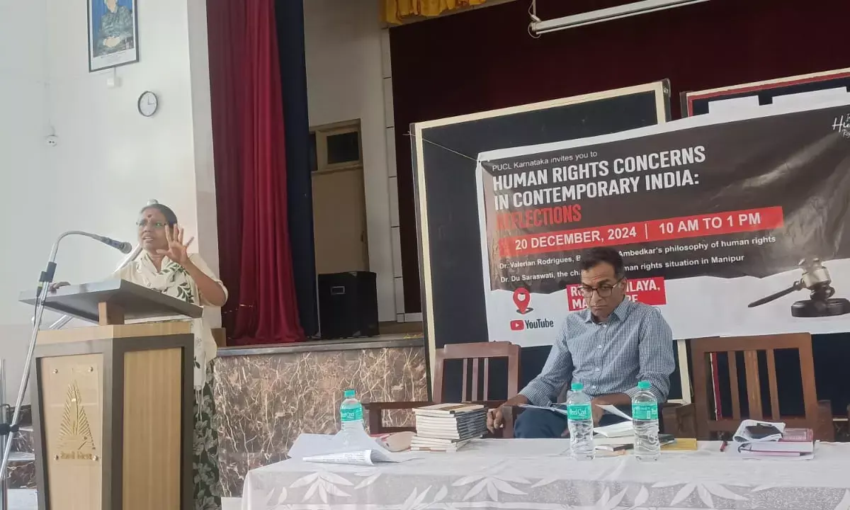 ಪಿಯುಸಿಎಲ್ನ ಕರ್ನಾಟಕ ಘಟಕದಿಂದ ‘ಸಮಕಾಲೀನ ಭಾರತದಲ್ಲಿ ಮಾನವ ಹಕ್ಕುಗಳ ಕಾಳಜಿ’ ಎಂಬ ವಿಷಯದಲ್ಲಿ ಶುಕ್ರವಾರ ನಗರದ ರೋಶನಿ ನಿಲಯದ ಸಭಾಂಗಣದಲ್ಲಿ ಆಯೋಜಿಸಲಾದ ವಿಚಾರಗೋಷ್ಠಿಯಲ್ಲಿ ‘ಮಾನವ ಹಕ್ಕುಗಳಿಗೆ ಸವಾಲಾಗಿರುವ ಮಣಿಪುರದ ಪರಿಸ್ಥಿತಿ’ ಬಗ್ಗೆ ಅವರು ಬೆಳಕು ಚೆಲ್ಲಿದರು.