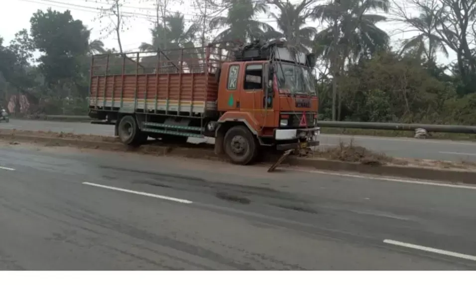 ತುಂಬೆ | ಚಾಲನೆ ವೇಳೆ ಚಾಲಕನಿಗೆ ಫಿಟ್ಸ್ ಸಮಸ್ಯೆ: ಡಿವೈಡರ್ ಮೇಲೇರಿದ ಲಾರಿ
