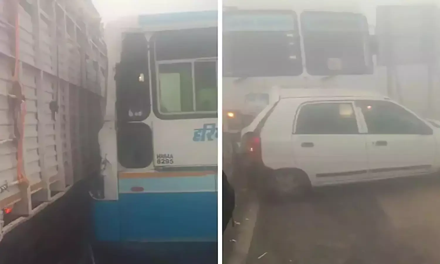 ದಟ್ಟ ಮಂಜು: ಹರಿಯಾಣದಲ್ಲಿ ಸರಣಿ ಅಪಘಾತ; ಬಸ್, ಕಾರು, ಟ್ರಕ್ ಗಳಿಗೆ ಭಾರೀ ಹಾನಿ