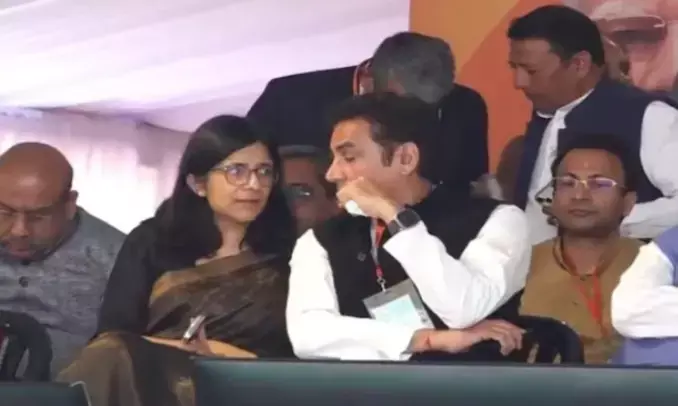 ರೇಖಾ ಗುಪ್ತಾ ಪ್ರಮಾಣ ವಚನ ಸ್ವೀಕಾರ ಕಾರ್ಯಕ್ರಮದಲ್ಲಿ ಕಂಡು ಬಂದ ಆಪ್ ಸಂಸದೆ ಸ್ವಾತಿ ಮಲಿವಾಲ್!