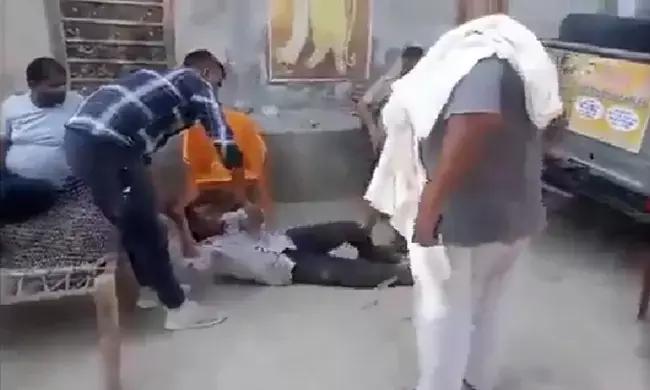Cow viglante @bittubajrangi34 #bittubajrangi in controversy yet again as he thrashes a youth in presence of a cop. The youth according to him was luring two young girls into his room with malicious intentions. Bajrangi's gang brought him to Bajrangi to teach a 'Lesson'.… pic.twitter.com/yfplmzkhdG