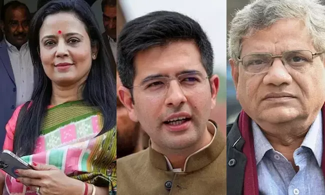 ಮಹುವಾ ಮೊಯಿತ್ರಾ / ರಾಘವ್ ಛಡ್ಡಾ / ಸೀತಾರಾಂ ಯೆಚೂರಿ (Photo: PTI)