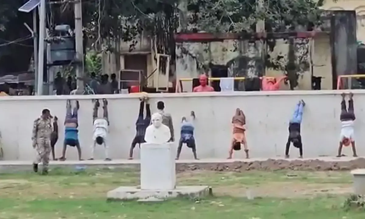 ಅಯೋಧ್ಯೆಯ ರಾಮ ಮಂದಿರದ ಹೊರಗಡೆ ಪೂಜಾ ಸಾಮಗ್ರಿ ಮಾರಾಟ ಮಾಡಿದ್ದಕ್ಕೆ ಬೀದಿ ಬದಿ ವ್ಯಾಪಾರಿಗಳಿಗೆ ತಲೆ ಕೆಳಗಾಗಿ ನಿಲ್ಲುವ ಶಿಕ್ಷೆ!