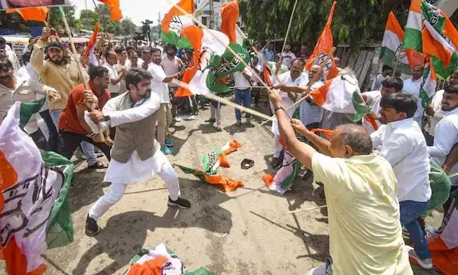 ಬಿಜೆಪಿಯ ಪ್ರತಿಭಟನಾ ಮೆರವಣಿಗೆ ಬಿಹಾರ ಕಾಂಗ್ರೆಸ್ ರಾಜ್ಯ ಕಚೇರಿ ಸದಾಕತ್ ಆಶ್ರಮದ ಬಳಿ ಸಾಗುವಾಗ ಬಿಜೆಪಿ ಕಾರ್ಯಕರ್ತರು ಕಾಂಗ್ರೆಸ್ ಕಚೇರಿಗೆ ನುಗ್ಗಿದ ನಂತರ ಬಿಜೆಪಿ ಮತ್ತು ಕಾಂಗ್ರೆಸ್ ಕಾರ್ಯಕರ್ತರ ನಡುವೆ ಘರ್ಷಣೆ ಸಂಭವಿಸಿದೆ.