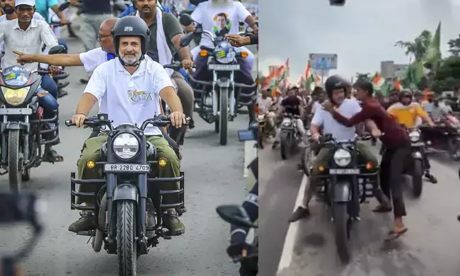 ಮತದಾರರ ಅಧಿಕಾರ ಯಾತ್ರೆಯ ಭಾಗವಾಗಿ ಲೋಕಸಭಾ ವಿಪಕ್ಷ ನಾಯಕ ರಾಹುಲ್ ಗಾಂಧಿ ಹಾಗೂ ಆರ್ಜೆಡಿ ನಾಯಕ ತೇಜಸ್ವಿ ಯಾದವ್ ಬೈಕ್ ಅನ್ನು ಚಲಾಯಿಸುವಾಗ, ಭದ್ರತಾ ವ್ಯವಸ್ಥೆಯ ಸರ್ಪಗಾವಲನ್ನು ಉಲ್ಲಂಘಿಸಿದ ವ್ಯಕ್ತಿಯೊಬ್ಬ ರಾಹುಲ್ ಗಾಂಧಿಯನ್ನು ತಬ್ಬಿಕೊಂಡು ಅವರ ತೋಳಿಗೆ ಮುತ್ತಿಕ್ಕಿದ್ದಾನೆ. ತಕ್ಷಣವೇ ರಾಹುಲ್ ಗಾಂಧಿಯವರ ಭದ್ರತಾ ಸಿಬ್ಬಂದಿಯು ಆತನನ್ನು ದೂರಕ್ಕೆ ತಳ್ಳಿ, ಆತನಿಗೆ ಕಪಾಳ ಮೋಕ್ಷ ಮಾಡಿದ್ದಾರೆ. ಈ ಕುರಿತ ವಿಡಿಯೊ ಸಾಮಾಜಿಕ ಮಾಧ್ಯಮದಲ್ಲಿ ವೈರಲ್ ಆಗಿದೆ. ಕೂಡಲೇ ಕಾರ್ಯಪ್ರವೃತ್ತರಾದ ಭದ್ರತಾ ಸಿಬ್ಬಂದಿಗಳು ಆತನನ್ನು ಭದ್ರತಾ ವಲಯದಿಂದ ಹೊರಕ್ಕೆ ತಳ್ಳಿದ್ದಾರೆ.