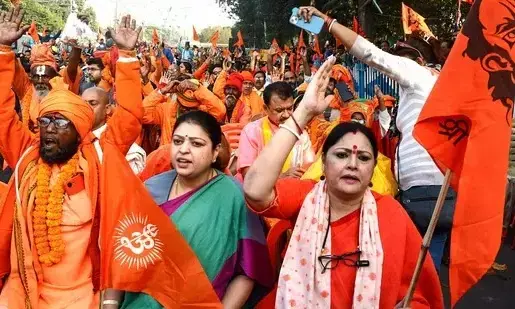 ಕೋಲ್ಕತ್ತಾದಲ್ಲಿ ಬಿಜೆಪಿ ನಾಯಕ ಲಾಕೆಟ್ ಚಟರ್ಜಿ ಮತ್ತು ಸನ್ಯಾಸಿಗಳು 'ಬಂಗಾಳಿ ಹಿಂದೂ ಸುರಕ್ಷಾ ಸಮಿತಿ' ವೇದಿಕೆಯಡಿ ಪ್ರತಿಭಟನಾ ಮೆರವಣಿಗೆ ನಡೆಸಿದ್ದಾರೆ.
