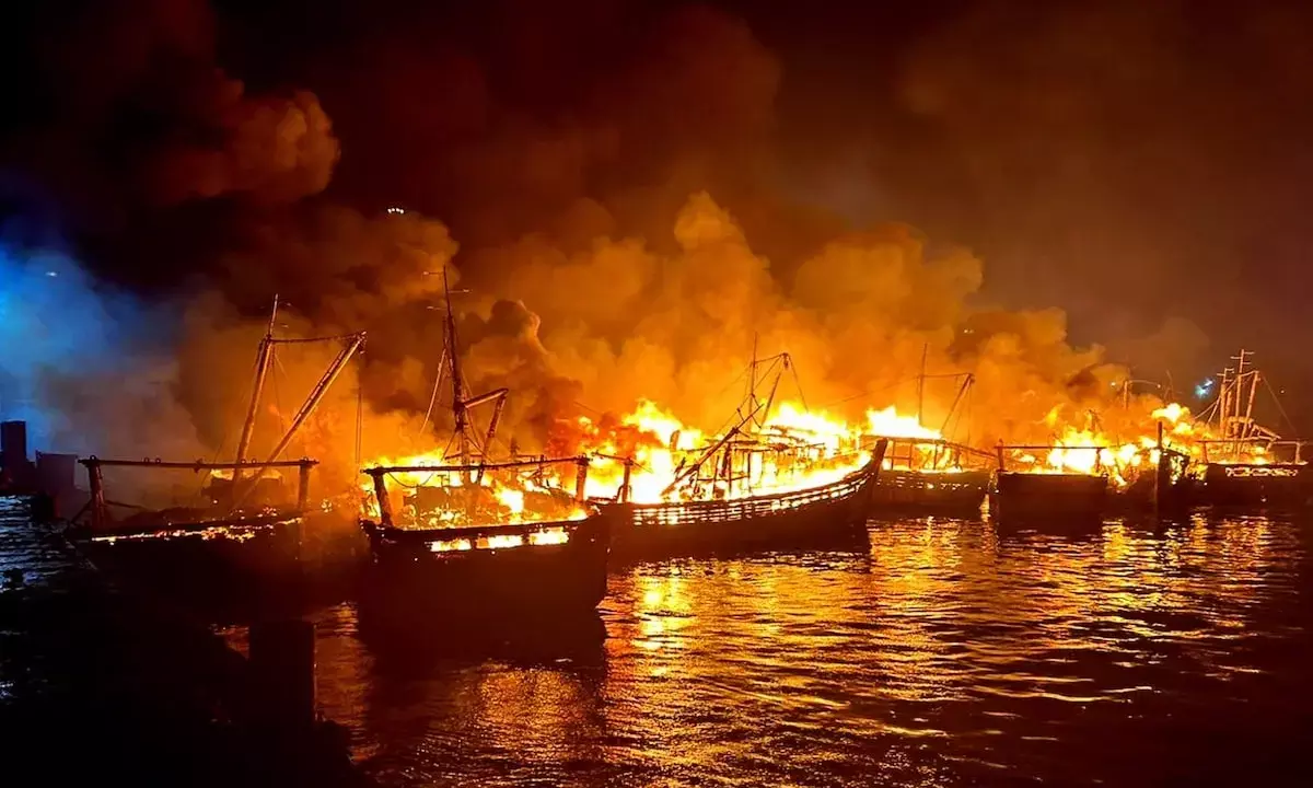 ವಿಶಾಖಪಟ್ಟಣಂ ಬಂದರಿನಲ್ಲಿ ದೋಣಿಗಳು ಸುಟ್ಟು ಭಸ್ಮ ಪ್ರಕರಣ ; 10 ಮಂದಿ ಪೊಲೀಸ್ ವಶಕ್ಕೆ