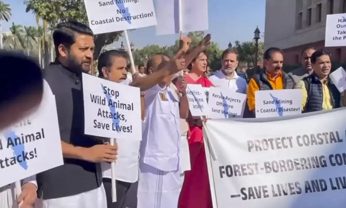 ಕೇರಳದಲ್ಲಿ ವನ್ಯಜೀವಿ ದಾಳಿ: ಸಂಸತ್ ಆವರಣದಲ್ಲಿ ಕಾಂಗ್ರೆಸ್ ಸಂಸದರಿಂದ ಪ್ರತಿಭಟನೆ