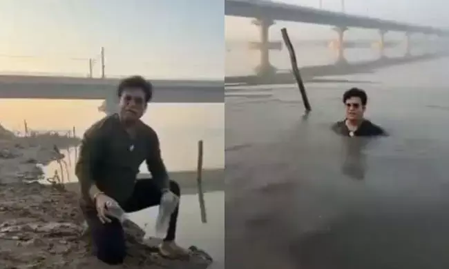 ಯಮುನಾ ನದಿಯ ಸ್ವಚ್ಛತೆಯ ಕುರಿತು ರೀಲ್ ಮಾಡುವ ವೇಳೆ ನದಿಗೆ ಜಾರಿ ಬಿದ್ದ ಬಿಜೆಪಿ ಶಾಸಕ; ವಿಡಿಯೋ ವೈರಲ್