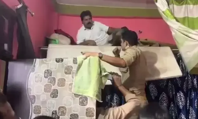 ಉತ್ತರ ಪ್ರದೇಶ | ಪೊಲೀಸರ ಶೋಧದ ವೇಳೆ ಹಾಸಿಗೆಯಡಿ ಅವಿತುಕೊಂಡಿದ್ದ ಎಸ್ಪಿ ನಾಯಕ : ವೀಡಿಯೊ ವೈರಲ್