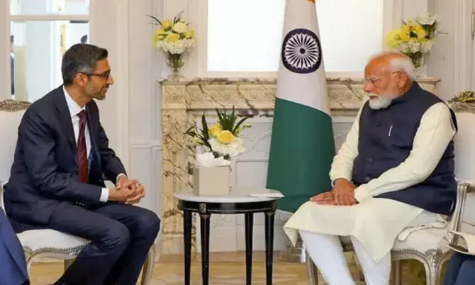 ಸುಂದರ್ ಪಿಚೈ , ನರೇಂದ್ರ ಮೋದಿ | Photo Credit : PTI