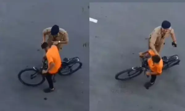 ಪ್ರಧಾನಿ ಬೆಂಗಾವಲು ಪಡೆ ಸಿದ್ಧತೆ ನಡೆಸುತ್ತಿದ್ದ ರಸ್ತೆಗೆ ಸೈಕಲ್ ನಲ್ಲಿ ಬಂದ ಬಾಲಕನ ಕೂದಲು ಎಳೆದಾಡಿ ಕಪಾಳಮೋಕ್ಷ ಮಾಡಿದ ಪೊಲೀಸ್ ಅಧಿಕಾರಿ