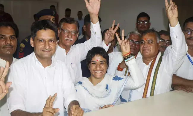 ಕಾಂಗ್ರೆಸ್ನ ಇನ್ನೋರ್ವ ಅಭ್ಯರ್ಥಿ ಹಾಗೂ ಖ್ಯಾತ ಕುಸ್ತಿಪಟು ವಿನೇಶ ಫೋಗಟ್ ಅವರು ಜುಲಾನಾ ಕ್ಷೇತ್ರದಿಂದ ತನ್ನ ನಾಮಪತ್ರ ಸಲ್ಲಿಸಿದರು.