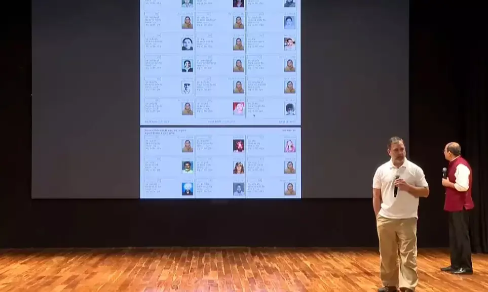 ಬುಧವಾರ ಸುದ್ದಿಗೋಷ್ಠಿಯಲ್ಲಿ ಮಾತನಾಡಿದ ರಾಹುಲ್ ಗಾಂಧಿ ಅವರು, ಹರ್ಯಾಣ ವಿಧಾನಸಭಾ ಚುನಾವಣೆಯಲ್ಲಿಯೂ ಮತದಾರರ ಪಟ್ಟಿಯಲ್ಲಿ ತಿದ್ದುಪಡಿ, ನಕಲಿ ಮತದಾನ ಹಾಗೂ ಇವಿಎಂ ದುರುಪಯೋಗದಂತಹ ಘಟನೆಗಳು ನಡೆದಿರುವುದು ಬಹಿರಂಗವಾಗುತ್ತಿದೆ ಎಂದು ಹೇಳಿದರು.