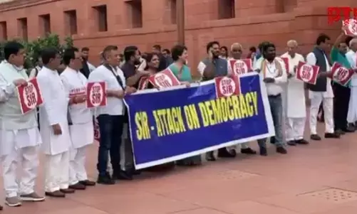 ಮುಂಗಾರು ಅಧಿವೇಶನ: ಎಸ್ಐಆರ್ ವಿರುದ್ಧ ಸಂಸತ್ತಿನ ಆವರಣದಲ್ಲಿ ಇಂಡಿಯಾ ಮೈತ್ರಿಕೂಟದ ಸಂಸದರಿಂದ ಪ್ರತಿಭಟನೆ
