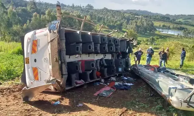 ಪ್ರತ್ಯಕ್ಷದರ್ಶಿಗಳ ಪ್ರಕಾರ, ಚಾಲಕನ ನಿಯಂತ್ರಣ ಕಳೆದುಕೊಂಡ ಬಸ್ ಹಲವು ಬಾರಿ ಪಲ್ಟಿ ಹೊಡೆದಿದೆ. ಈ ಅಪಘಾತದಲ್ಲಿ ಗಾಯಗೊಂಡಿರುವ 27 ಮಂದಿಯನ್ನು ಚಿಕಿತ್ಸೆಗಾಗಿ ಸಮೀಪದ ಆಸ್ಪತ್ರೆಗೆ ಸಾಗಿಸಲಾಗಿದೆ. ಈ ಪೈಕಿ ಮೂವರ ಆರೋಗ್ಯ ಸ್ಥಿತಿ ಗಂಭೀರವಾಗಿದ್ದು, ಅವರನ್ನು ಸುಧಾರಿತ ವೈದ್ಯಕೀಯ ಆರೈಕೆಗಾಗಿ ನೈರೋಬಿಯದ ಆಸ್ಪತ್ರೆಯೊಂದಕ್ಕೆ ಸಾಗಿಸುವ ಸಾಧ್ಯತೆ ಇದೆ ಎನ್ನಲಾಗಿದೆ.