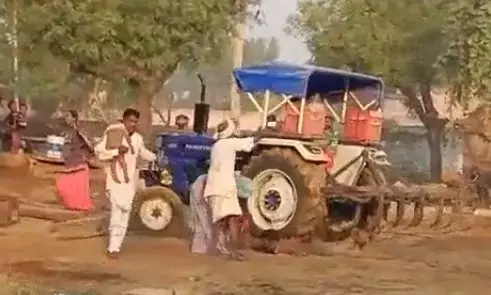 ಜೈಪುರ: ಎರಡು ಕುಟುಂಬಗಳ ನಡುವಿನ ಜಮೀನು ವಿವಾದಕ್ಕೆ ಸಂಬಂಧಿಸಿ ಬುಧವಾರ ರಾಜಸ್ಥಾನದ ಭರತ್ಪುರದಲ್ಲಿ ನಡೆದ ಘರ್ಷಣೆಯಲ್ಲಿ, ಓರ್ವ ವ್ಯಕ್ತಿಯನ್ನು ಟ್ರ್ಯಾಕ್ಟರ್ ಮೂಲಕ ಪದೇ ಪದೇ ನೆಲಕ್ಕುರುಳಿಸುವುದನ್ನು ತೋರಿಸುವ ವೀಡಿಯೊ ಒಂದು ವೈರಲ್ ಆಗಿದೆ.