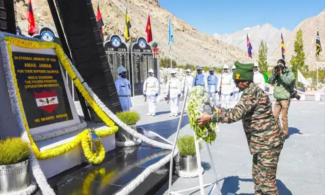 ಸಮುದ್ರ ಮಟ್ಟದಿಂದ 20 ಸಾವಿರ ಅಡಿ ಎತ್ತರದಲ್ಲಿರುವ ಸಿಯಾಚಿನ್ ಗ್ಲೇಸಿಯರ್ ಕಾರಕೋರಂ ಪರ್ವತ ಶ್ರೇಣಿಯಲ್ಲಿದೆ.