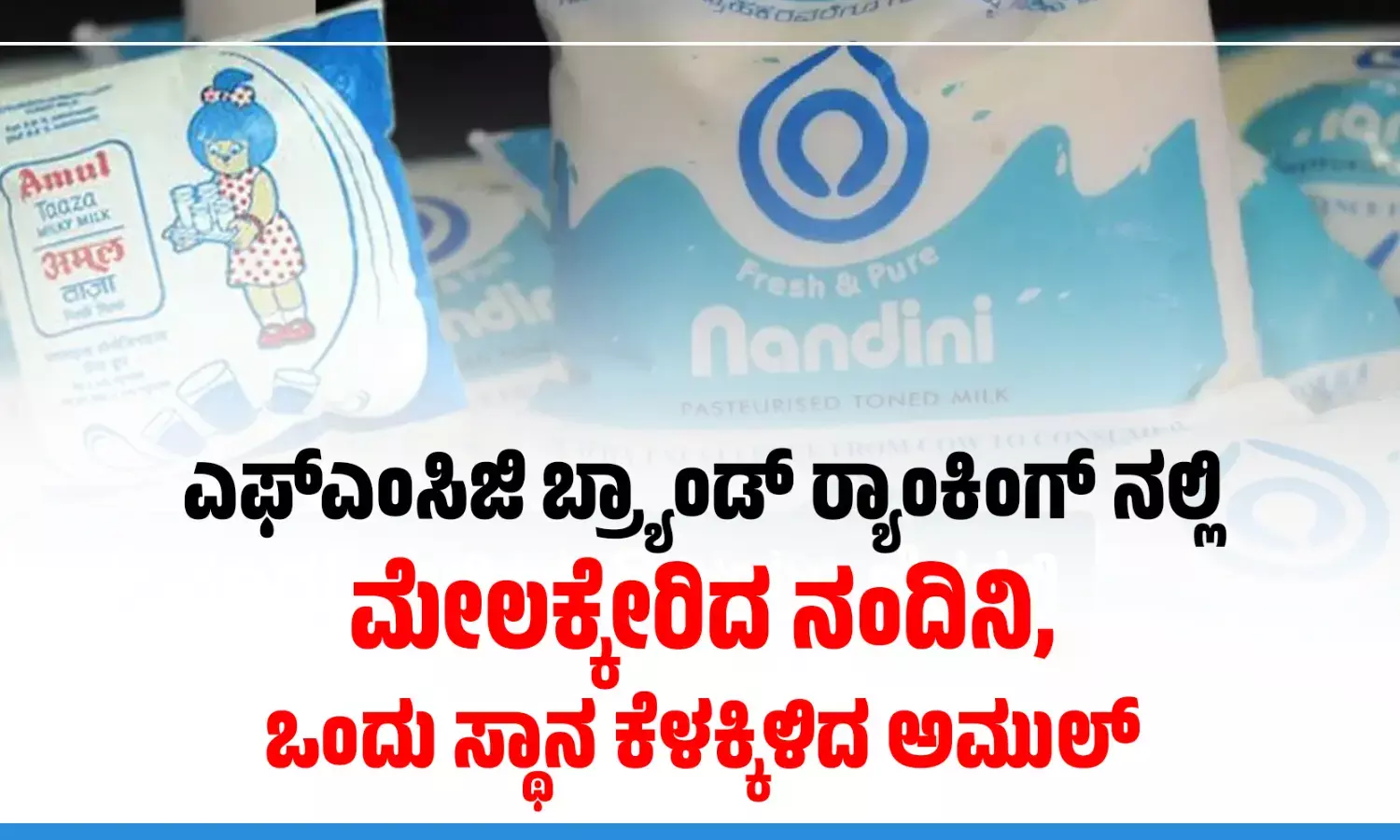 ಎಫ್ಎಂಸಿಜಿ ಬ್ರ್ಯಾಂಡ್ ರ್ಯಾಂಕಿಂಗ್ ನಲ್ಲಿ ಮೇಲಕ್ಕೇರಿದ ನಂದಿನಿ, ಒಂದು ಸ್ಥಾನ ಕೆಳಕ್ಕಿಳಿದ ಅಮುಲ್
