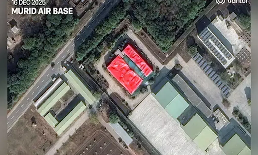 ಆಪರೇಷನ್ ಸಿಂಧೂರ್ ಕಾರ್ಯಾಚರಣೆಯ ವೇಳೆ ಭಾರತೀಯ ವಾಯು ಪಡೆಯಿಂದ ಹಾನಿಗೀಡಾಗಿದ್ದ ಮುರಿದ್ ನಲ್ಲಿನ ಕಟ್ಟಡದ ಸುತ್ತ ಬೃಹತ್ ಟಾರ್ಪಾಲಿನ್ ಹೊದಿಕೆ