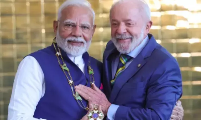 ಬ್ರೆಸಿಲಿಯಾ: ಪ್ರಧಾನಿ ನರೇಂದ್ರ ಮೋದಿ ಅವರಿಗೆ ಬ್ರೆಝಿಲ್ನ ಅತ್ಯುನ್ನತ ನಾಗರಿಕ ಗೌರವವಾದ "ಗ್ರ್ಯಾಂಡ್ ಕಾಲರ್ ಆಫ್ ದಿ ನ್ಯಾಷನಲ್ ಆರ್ಡರ್ ಆಫ್ ದಿ ಸದರ್ನ್ ಕ್ರಾಸ್' ಅನ್ನು ಪ್ರದಾನ ಮಾಡಲಾಯಿತು.