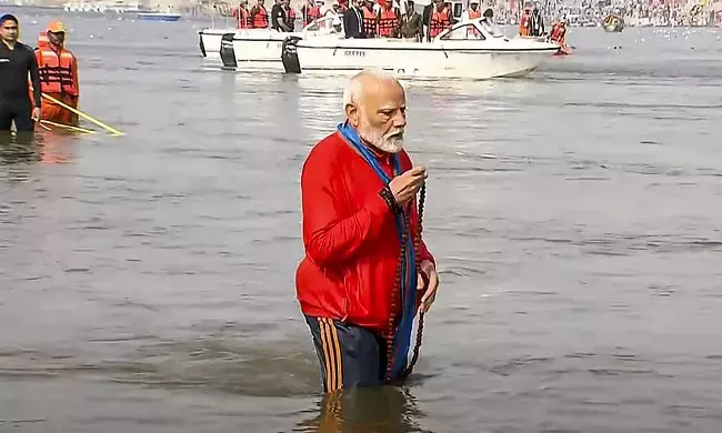 ಕುಂಭಮೇಳದ ತ್ರಿವೇಣಿ ಸಂಗಮದಲ್ಲಿ ಪವಿತ್ರ ಸ್ನಾನ ಮಾಡಿದ ಪ್ರಧಾನಿ ಮೋದಿ