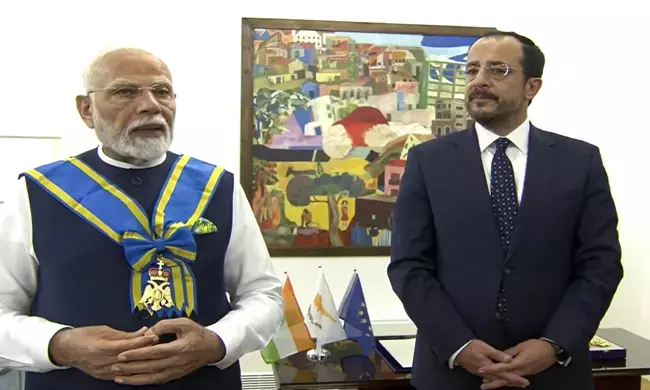 ಪ್ರಧಾನಿ ಮೋದಿಗೆ ಸೈಪ್ರಸ್ ನ ಅತ್ಯುನ್ನತ ನಾಗರಿಕ ಗೌರವ ಪ್ರದಾನ; ಭಾರತದ ಜನತೆಗೆ ಅರ್ಪಣೆ