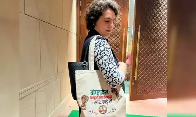 ಇದರ ಬೆನ್ನಿಗೇ, ಇಂದು ಬಾಂಗ್ಲಾದೇಶದ ಹಿಂದೂಗಳ ಪರ ಚೀಲವನ್ನು ನೇತಾಕಿಕೊಂಡು ಸಂಸತ್ತಿಗೆ ಆಗಮಿಸಿದ ಪ್ರಿಯಾಂಕಾ ಗಾಂಧಿ, ಮತ್ತೊಮ್ಮೆ ಸುದ್ದಿಯ ಕೇಂದ್ರ ಬಿಂದುವಾಗಿ ಬದಲಾಗಿದ್ದಾರೆ.
