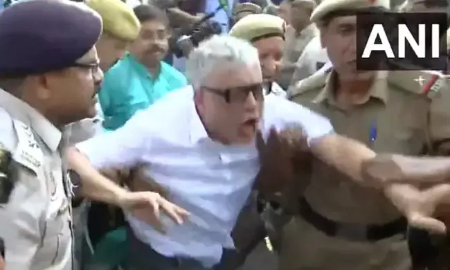 ಹೊಸದಿಲ್ಲಿ: ಚುನಾವಣಾ ಆಯೋಗದ ಕೇಂದ್ರ ಕಚೇರಿ ಎದುರು ಧರಣಿ ನಿರತರಾಗಿದ್ದ ಬಂಗಾಳದ ಆಡಳಿತಾರೂಢ ತೃಣಮೂಲ ಕಾಂಗ್ರೆಸ್ನ 10 ಮಂದಿ ಸಂಸದರ ನಿಯೋಗದ ಸದಸ್ಯರನ್ನು ಪೊಲೀಸರು ಸೋಮವಾರ ವಶಕ್ಕೆ ಪಡೆದರು. ಪೊಲೀಸರು ಪ್ರತಿಭಟನಾನಿರತರನ್ನು ಎಳೆದಾಡಿಕೊಂಡು, ಕೆಲವರನ್ನು ಅಕ್ಷರಶಃ ಎತ್ತಿಕೊಂಡು ಬಸ್ಸಿಗೆ ತಳ್ಳುತ್ತಿರುವ ದೃಶ್ಯಗಳು ಜಾಲತಾಣಗಳಲ್ಲಿ ವೈರಲ್ ಆಗಿವೆ.