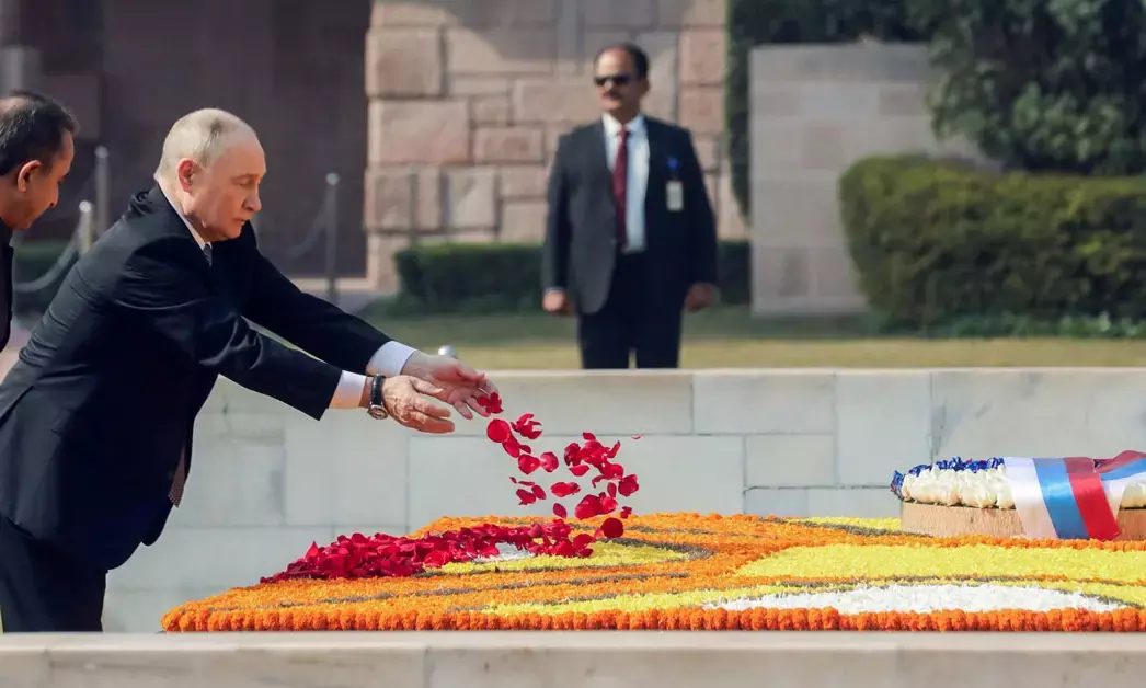 ರಾಜಘಾಟ್ ಗೆ ಪುಟಿನ್ ಭೇಟಿ: ಗಾಂಧೀಜಿಯವರಿಗೆ ನಮನ