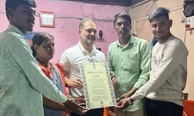ಸಾನಡೆ ಅವರ ಮನೆಯಿಂದ ಹೊರಡುವಾಗ ರಾಹುಲ್ ಭಾರತೀಯ ಸಂವಿಧಾನದ ಪೀಠಿಕೆಯ ಪ್ರತಿಯನ್ನು ಕುಟುಂಬಕ್ಕೆ ನೀಡಿದರು.