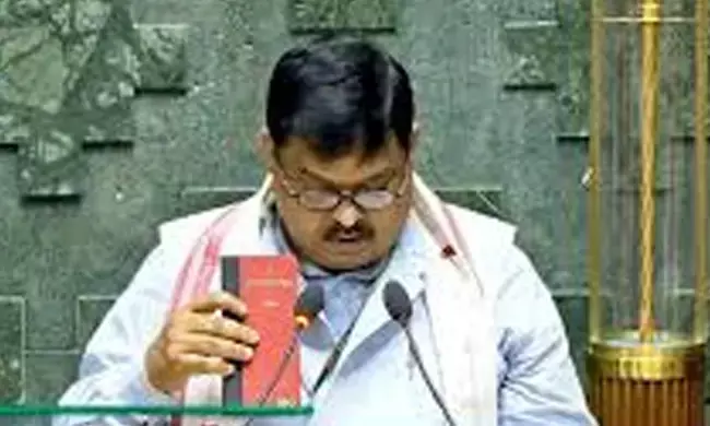 ಕೈಯಲ್ಲಿ ಸಂವಿಧಾನದ ಪ್ರತಿ ಹಿಡಿದು ಸಂಸದರಾಗಿ ಪ್ರಮಾಣ ವಚನ ಸ್ವೀಕರಿಸಿದ ರಕೀಬುಲ್ ಹುಸೈನ್