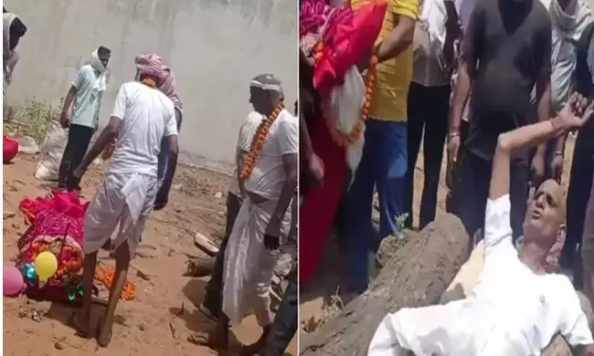 ಬಳಿಕ ಸಂಬಂಧಿಕರು ಮತ್ತು ಗ್ರಾಮಸ್ಥರು ಆತನನ್ನು ಚಿತೆಯ ಮೇಲಿನಿಂದ ಕೆಳಗಿಳಿಸಿ ಅಂತ್ಯಕ್ರಿಯೆಗೆ ಮನವೊಲಿಸಲು ಪ್ರಯತ್ನಿಸಿದರು. ಆದರೆ ಓಂಪ್ರಕಾಶ್ ಇದಕ್ಕೆ ಸಮ್ಮತಿಸಿಲ್ಲ.