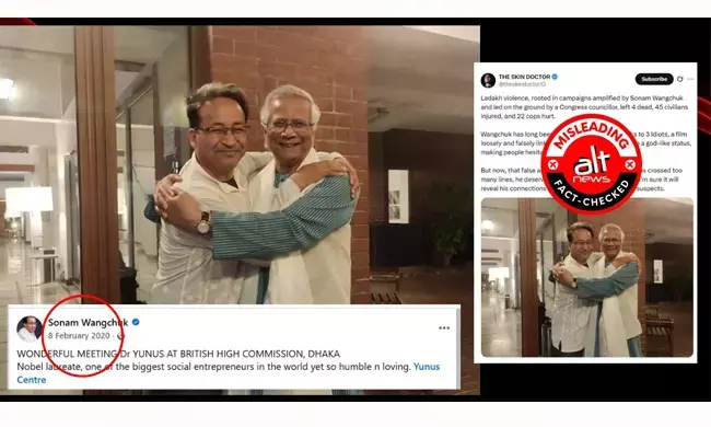 FACT CHECK | ಲಡಾಖ್ ಹಿಂಸಾಚಾರದ ನಂತರ ದಾರಿ ತಪ್ಪಿಸುವ ಹೇಳಿಕೆಗಳೊಂದಿಗೆ ಮುಹಮ್ಮದ್ ಯೂನುಸ್ ರೊಂದಿಗಿನ ಸೋನಂ ವಾಂಗ್ಚುಕ್ ರ ಫೋಟೊ ವೈರಲ್