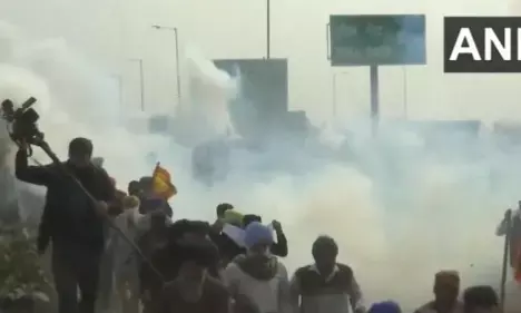 #WATCH | Police fire tear gas to disperse protesting farmers at Punjab-Haryana Shambhu border.