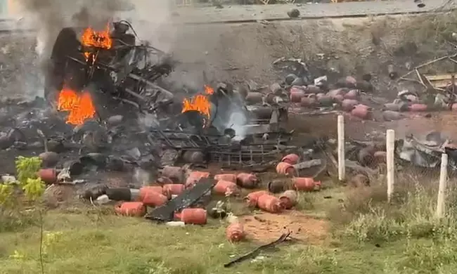 ತಮಿಳುನಾಡು | ಹೆದ್ದಾರಿಯಲ್ಲಿ ಟ್ರಕ್ ಪಲ್ಟಿ: 80 ಎಲ್ಪಿಜಿ ಸಿಲಿಂಡರ್ ಗಳ ಸ್ಫೋಟ!