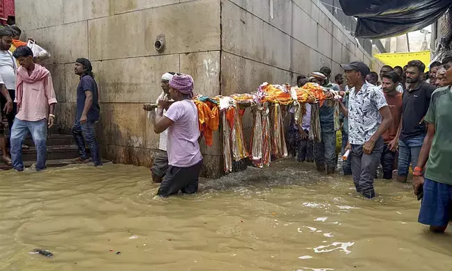 ವಾರಾಣಸಿ: ಘಾಟ್ ಗಳು ನೀರಿನಿಂದ ಆವೃತ; ಮೇಲ್ಛಾವಣಿಗಳಲ್ಲಿ ಶವದಹನ