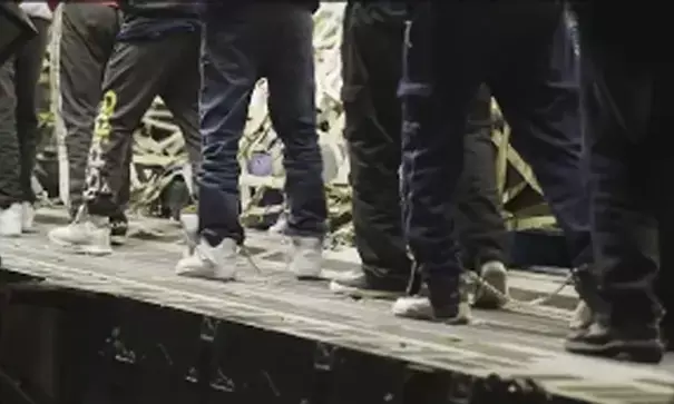 ಗಡಿ ಗಸ್ತು ಪಡೆಯ ಮುಖ್ಯಸ್ಥ ಮೈಕೆಲ್ ಡಬ್ಲ್ಯು. ಬ್ಯಾಂಕ್ಸ್ ಹಂಚಿಕೊಂಡಿರುವ ವೀಡಿಯೊ ತುಣುಕು ಗಡಿಪಾರುಗೊಂಡವರು ಕೈಕೋಳಗಳು ಮತ್ತು ಸಂಕೋಲೆಗಳೊಂದಿಗೆ ವಿಮಾನವನ್ನು ಹತ್ತುತ್ತಿರುವುದನ್ನು ತೋರಿಸಿದೆ. ವಲಸೆ ಕಾನೂನುಗಳ ಅನುಷ್ಠಾನಕ್ಕೆ ಅಮೆರಿಕದ ಬದ್ಧತೆಯನ್ನು ಎತ್ತಿ ತೋರಿಸಿರುವ ಬ್ಯಾಂಕ್ಸ್, ‘ನೀವು ಅಕ್ರಮವಾಗಿ ಗಡಿ ದಾಟಿದ್ದರಿಂದ ನಿಮ್ಮನ್ನು ದೇಶದಿಂದ ಹೊರಹಾಕಲಾಗುತ್ತದೆ’ ಎಂದು ಹೇಳಿದ್ದಾರೆ.