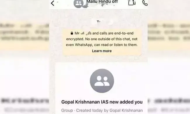 ಕೇರಳ ಕೇಡರ್ ನಲ್ಲಿ ಸೇವೆಯಲ್ಲಿರುವ ಕೇವಲ ಹಿಂದೂ ಅಧಿಕಾರಿಗಳನ್ನು ಒಳಗೊಂಡ ವಾಟ್ಸಾಪ್ ಗ್ರೂಪ್ ಅನ್ನು ಐಎಎಸ್ ಅಧಿಕಾರಿ ಕೆ ಗೋಪಾಲಕೃಷ್ಣನ್ ಬಳಸುತ್ತಿದ್ದ ಫೋನ್ ಸಂಖ್ಯೆಯಿಂದ ರಚಿಸಲಾಗಿದೆ. ಅನೇಕ ಅಧಿಕಾರಿಗಳು ಇದು ಸೂಕ್ತವಲ್ಲ. ಅಧಿಕಾರಿಗಳು ಎತ್ತಿಹಿಡಿಯುವ ಜಾತ್ಯತೀತ ತತ್ವಗಳಿಗೆ ವಿರುದ್ಧವಾಗಿದೆ ಎಂದು ಹಲವು ಅಧಿಕಾರಿಗಳು ಆಕ್ಷೇಪ ವ್ಯಕ್ತಪಡಿಸಿದರು.