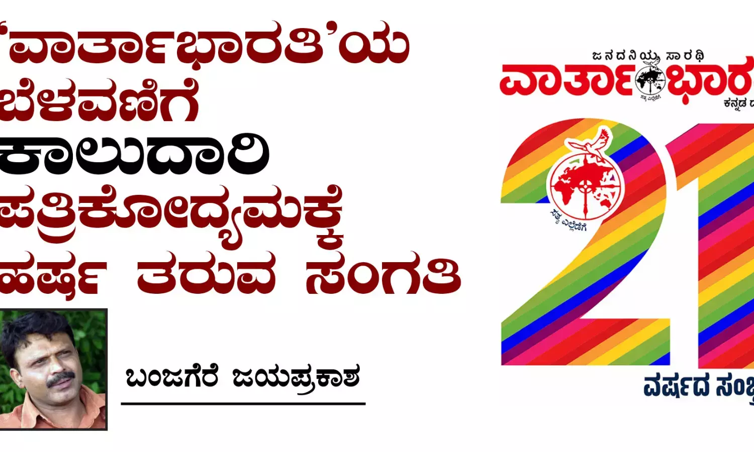 ಜನದನಿಯ ಸಾರಥಿ ಎಂಬ ವಿಶೇಷಣವನ್ನು ತನ್ನ ಹೆಸರಿನಡಿಯಲ್ಲಿ ಹೊತ್ತಿರುವ ‘ವಾರ್ತಾಭಾರತಿ’ 20 ವರ್ಷ ಪೂರೈಸಿರುವುದು ಸಂತಸದ ವಿಷಯ. ಇದು ಸಂತಸದ ವಿಷಯ ಮಾತ್ರವಲ್ಲ, ಗಮನಾರ್ಹ ವಿಷಯ ಕೂಡ. ‘ವಾರ್ತಾಭಾರತಿ’ ಅಂತಹ ದಢೂತಿ ಪತ್ರಿಕಾ ಸಂಸ್ಥೆಯೇನಲ್ಲ. ಭಾರೀ ಭಾರೀ ಪತ್ರಿಕಾ ಸಂಸ್ಥೆಗಳೇ ವಿದ್ಯುನ್ಮಾನ ಮಾಧ್ಯಮಗಳು ಮತ್ತು ಡಿಜಿಟಲ್ ಮಾಧ್ಯಮಗಳ ಭರಾಟೆಯಲ್ಲಿ ತಮ್ಮ ಮುದ್ರಣ ಮಾಧ್ಯಮದ ಆವೃತ್ತಿಗಳನ್ನು ಕಾಪಾಡಿಕೊಳ್ಳಲು ಕಷ್ಟ ಪಡುತ್ತಿರುವುದು ಗೊತ್ತಿರುವ ಸಂಗತಿಯೇ. ಅಂತಹದರಲ್ಲಿ ‘ವಾರ್ತಾಭಾರತಿ’ ತನ್ನ ಮೂರು ಆವೃತ್ತಿಗಳನ್ನು ನಿರಂತರವಾಗಿ ಪ್ರಕಟಗೊಳಿಸುತ್ತಾ ಇರುವುದು ಒಂದು ರೀತಿಯಲ್ಲಿ ‘ಕಾಲುದಾರಿ’ ಪತ್ರಿಕೋದ್ಯಮಕ್ಕೆ ಹರ್ಷ ತರುವ ಸಂಗತಿಯಾಗಿದೆ.