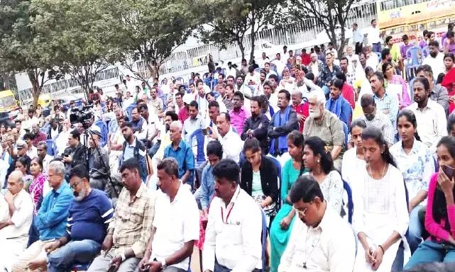 ಪ್ರತಿಭಟನೆಯಲ್ಲಿ ಪತ್ರಕರ್ತ ಡಾ.ಸಿದ್ದನಗೌಡ ಪಾಟೀಲ್, ಹಿರಿಯ ಸಾಹಿತಿ ಪ್ರೊ.ಎಸ್.ಜಿ.ಸಿದ್ದರಾಮಯ್ಯ, ಚಿಂತಕ ಶ್ರೀಪಾದ ಭಟ್, ಹಿರಿಯ ವಕೀಲ ವೆಂಕಟೇಶಗೌಡ, ಹೋರಾಟಗಾರ್ತಿ ಕೆ.ಎಸ್.ವಿಮಲಾ ಮತ್ತಿತರರು ಹಾಜರಿದ್ದರು.