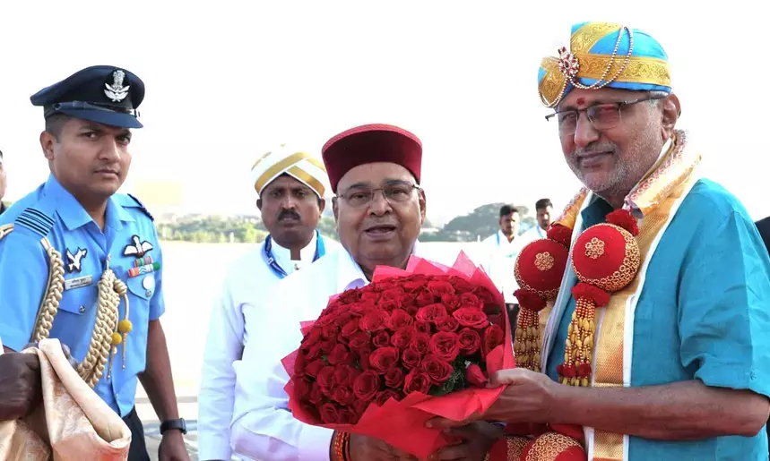ರಾಜ್ಯಪಾಲರಾದ ಥಾವರ್ ಚಂದ್ ಗೆಹ್ಲೋಟ್ ಅವರು ಉಪರಾಷ್ಟ್ರಪತಿಗಳಿಗೆ ಹೂಗುಚ್ಚ ನೀಡಿ ಆತ್ಮೀಯವಾಗಿ ಬರಮಾಡಿಕೊಂಡರು.