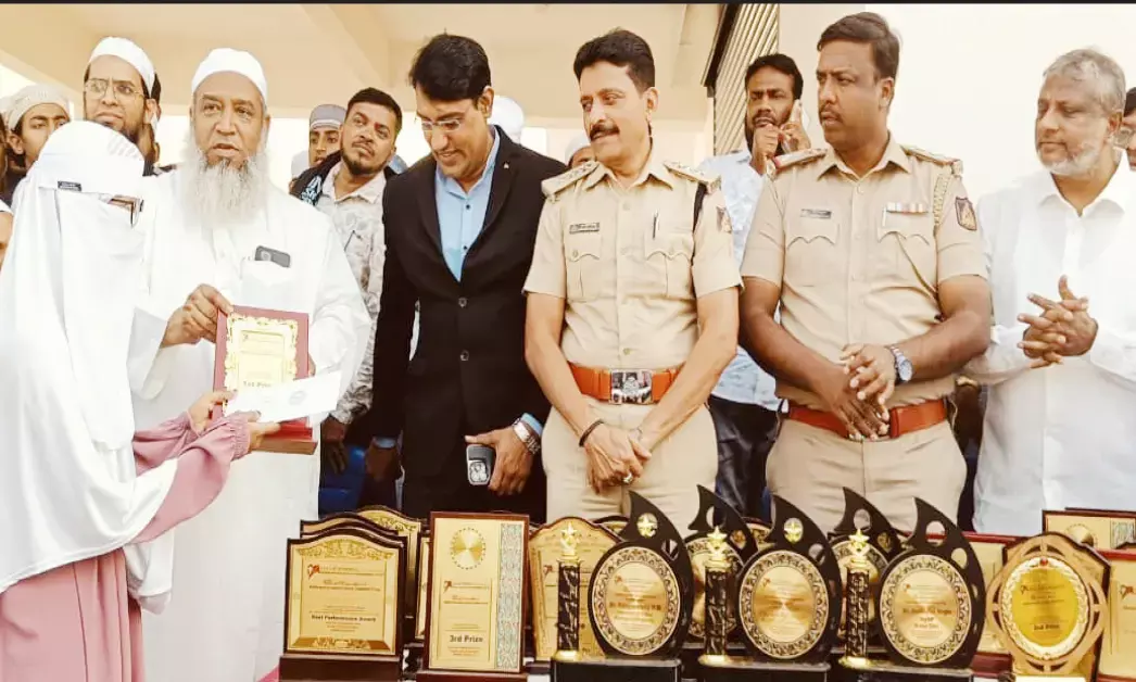 ರವಿವಾರ ನಗರದ ವೈಟ್ಫೀಲ್ಡ್ ಸಮೀಪದ ಕಾಡುಗೋಡಿ ಈದ್ಗಾ ಮೈದಾನದಲ್ಲಿ ಜಮೀಯತ್ ಉಲಮಾ ಹಿಂದ್ ಹಾಗೂ ಡಿಎಸ್ಎಫ್ ಫೌಂಡೇಶನ್ ವತಿಯಿಂದ ಆಯೋಜಿಸಲಾಗಿದ್ದ ಸೀರತ್ ಉನ್ ನಬೀ(ಸ) ರಸಪ್ರಶ್ನೆ ಸ್ಪರ್ಧೆಯಲ್ಲಿ ವಿಜೇತರಾದ ವಿದ್ಯಾರ್ಥಿಗಳಿಗೆ ಬಹುಮಾನ ವಿತರಿಸಿ ಅವರು ಮಾತನಾಡಿದರು.