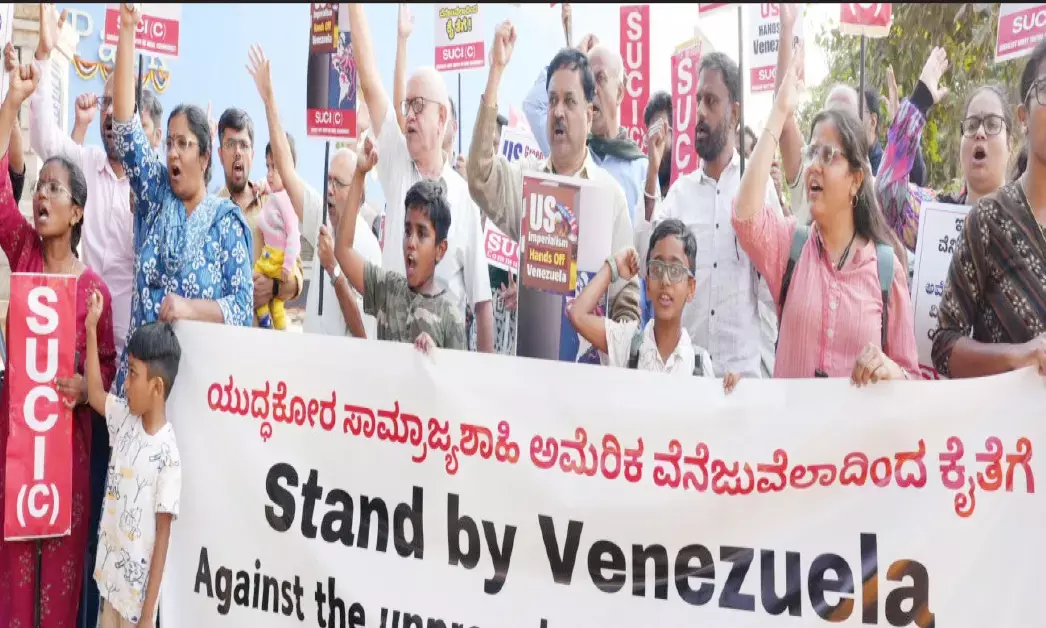ವೆನೆಝುವೆಲಾ ಮೇಲಿನ ಅಮೆರಿಕ ದಾಳಿಗೆ ಆಕ್ರೋಶ; ಅಮೆರಿಕದ ಪುಂಡಾಟಿಕೆ ವಿರುದ್ಧ ಕಠಿಣ ಕ್ರಮಕ್ಕೆ ಆಗ್ರಹಿಸಿ ಸಿಪಿಎಂ, ಎಸ್ಯುಸಿಐ ಪ್ರತಿಭಟನೆ