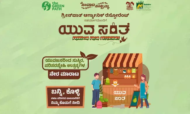 ಬೆಂಗಳೂರು: ಸಂವಾದ - ಬದುಕು ಸೆಂಟರ್ ಫಾರ್ ಲೈವ್ಲಿಹುಡ್ಸ್ ಲರ್ನಿಂಗ್ ಸಂಸ್ಥೆಯು ಬೆಂಗಳೂರಿನ ಮಲ್ಲೇಶ್ವರದಲ್ಲಿರುವ ದಿ ಗ್ರೀನ್ ಪಾತ್ ಆರ್ಗ್ಯಾನಿಕ್ ರೆಸ್ಟೋರಂಟ್ ಸಹಯೋಗದಲ್ಲಿ ಮೂರು ದಿನಗಳ ‘ಯುವಸಂತೆ’ಯನ್ನು ಆಯೋಜಿಸಲಾಗಿದೆ.
