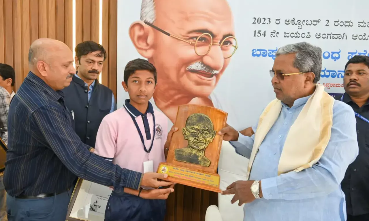 ಮಂಗಳವಾರ ಮುಖ್ಯಮಂತ್ರಿಗಳ ನಿವಾಸ ಕಾವೇರಿಯಲ್ಲಿ ರಾಜ್ಯ ಮಟ್ಟದ ಬಾಪೂಜಿ ಪ್ರಬಂಧ ಸ್ಪರ್ಧೆ ವಿಜೇತ 9 ವಿದ್ಯಾರ್ಥಿಗಳಿಗೆ ನಗದು ಬಹುಮಾನ ಹಾಗೂ ಪ್ರಶಸ್ತಿ ಪತ್ರಗಳು, ಸ್ಮರಣಿಕೆ ಹಾಗೂ ಗಾಂಧೀಜಿ ಅವರ ಜೀವ ಸಂದೇಶಗಳ ಕುರಿತು ಪುಸ್ತಕಗಳನ್ನು ವಿತರಿಸಿ ಶುಭಕೋರಿದರು.