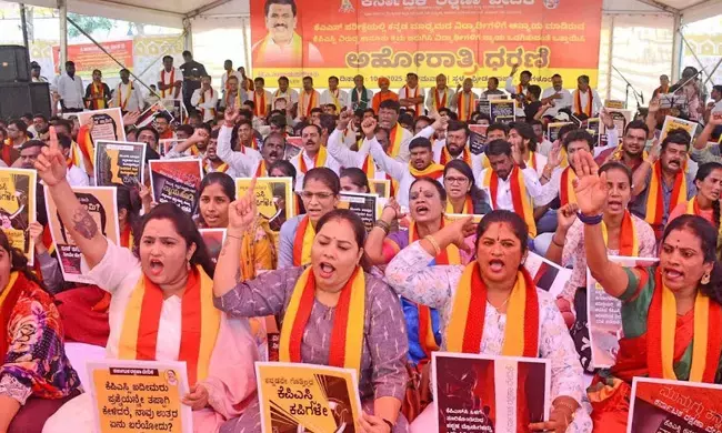 ಬೆಂಗಳೂರು : ಕೆಪಿಎಸ್ಸಿ ನಡೆಸಿದ ಕೆಎಎಸ್ ಪ್ರೊಬೆಷನರಿ ಹುದ್ದೆಗಳಲ್ಲಿ ಕನ್ನಡ ಅಭ್ಯರ್ಥಿಗಳಿಗೆ ಆದ ಅನ್ಯಾಯವನ್ನು ಸರಿಪಡಿಸುವಂತೆ ಆಗ್ರಹಿಸಿ, ನಗರದ ಫ್ರೀಡಂ ಪಾರ್ಕ್ನಲ್ಲಿ ಕರ್ನಾಟಕ ರಕ್ಷಣಾ ವೇದಿಕೆ ನೇತೃತ್ವದಲ್ಲಿ ಅಹೋರಾತ್ರಿ ಧರಣಿ ನಡೆಯಿತು.