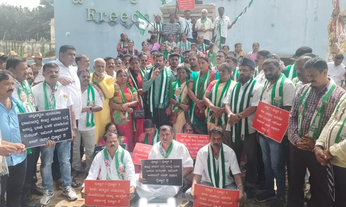 ಬುಧವಾರ ಫ್ರೀಡಂ ಪಾರ್ಕ್ ಮೈದಾನದಲ್ಲಿ ಜಮಾಯಿಸಿದ ಬೆಂಗಳೂರು ಮಹಾನಗರ ಜನತಾದಳ (ಜಾತ್ಯತೀತ) ಪಕ್ಷದ ಕಾರ್ಯಕರ್ತರು, ಎಚ್.ಡಿ.ಕುಮಾರಸ್ವಾಮಿ ಬಗ್ಗೆ ಚನ್ನಪಟ್ಟಣ ವಿಧಾನಸಭಾ ಕ್ಷೇತ್ರ ಉಪ ಚುನಾವಣೆಯ ಪ್ರಚಾರದ ಭಾಷಣದಲ್ಲಿ ಅವಹೇಳನಕಾರಿ ಹಾಗೂ ಅಸಭ್ಯ ಭಾಷೆ ಬಳಸಿದ ಝಮೀರ್ ಅಹ್ಮದ್ ಖಾನ್ ವಿರುದ್ಧ ಕ್ರಮ ಆಗಬೇಕೆಂದು ಒತ್ತಾಯಿಸಿದರು.