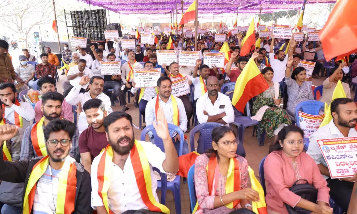 ಬೆಂಗಳೂರು : ಗೆಜೆಟೆಡ್ ಪ್ರೊಬೆಷನರಿ ಹುದ್ದೆಗಳ ಪರೀಕ್ಷೆಯಲ್ಲಿ ತಪ್ಪು ಎಸಗುತ್ತಿರುವ ಕೆಪಿಎಸ್ಸಿ ಪರೀಕ್ಷಾ ನಿಯಂತ್ರಕ ಜ್ಞಾನೇಂದ್ರ ಕುಮಾರ್ ಗಂಗ್ವಾರ್ ಹಾಗೂ ಸಿಬ್ಬಂದಿಯನ್ನು ಅಮಾನತುಗೊಳಿಸಬೇಕು ಎಂದು ಆಗ್ರಹಿಸಿ, ‘ಆಲ್ ಕರ್ನಾಟಕ ಸ್ಟೇಟ್ ಸ್ಟೂಡೆಂಟ್ಸ್ ಅಸೋಸಿಯೇಶನ್’ ವತಿಯಿಂದ ನಗರದ ಫ್ರೀಡಂ ಪಾರ್ಕ್ನಲ್ಲಿ ಬೃಹತ್ ಧರಣಿ ಸತ್ಯಾಗ್ರಹ ನಡೆಸಲಾಯಿತು.