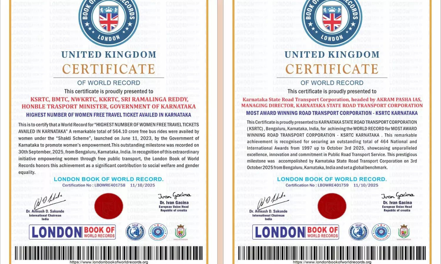 'ಲಂಡನ್ ಬುಕ್ ಆಫ್ ವರ್ಲ್ಡ್ ರೆಕಾರ್ಡ್ಸ್'ನಲ್ಲಿ ದಾಖಲೆ ಬರೆದ ಶಕ್ತಿ ಯೋಜನೆ, ಕೆಎಸ್ಸಾರ್ಟಿಸಿ